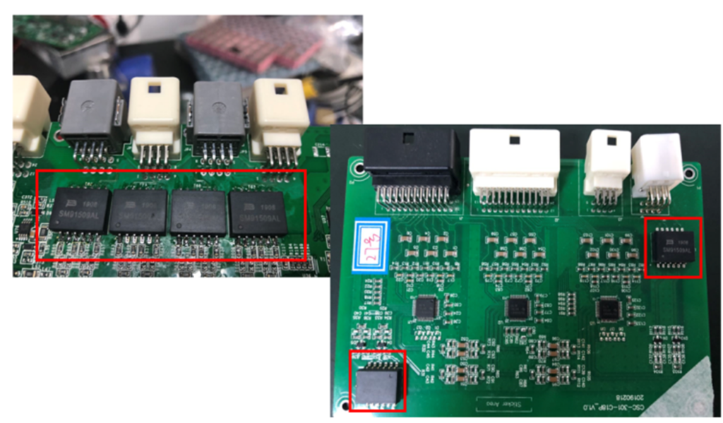 - 集中式是將所有的電氣部件集中到一塊大的板子中,采樣芯片通道利用最高且采樣芯片與主芯片之間可以采用菊花鏈通訊,電路設(shè)計(jì)相對(duì)簡(jiǎn)單,產(chǎn)品成本大為降低,只是所有的采集線束都會(huì)連接到主板上,對(duì)BMS的安全性提出更大挑戰(zhàn),并且菊花鏈通訊穩(wěn)定性方面也可能存在問(wèn)題。比較合適電池包容量比較小、模組及電池包型式比較固定的場(chǎng)合。