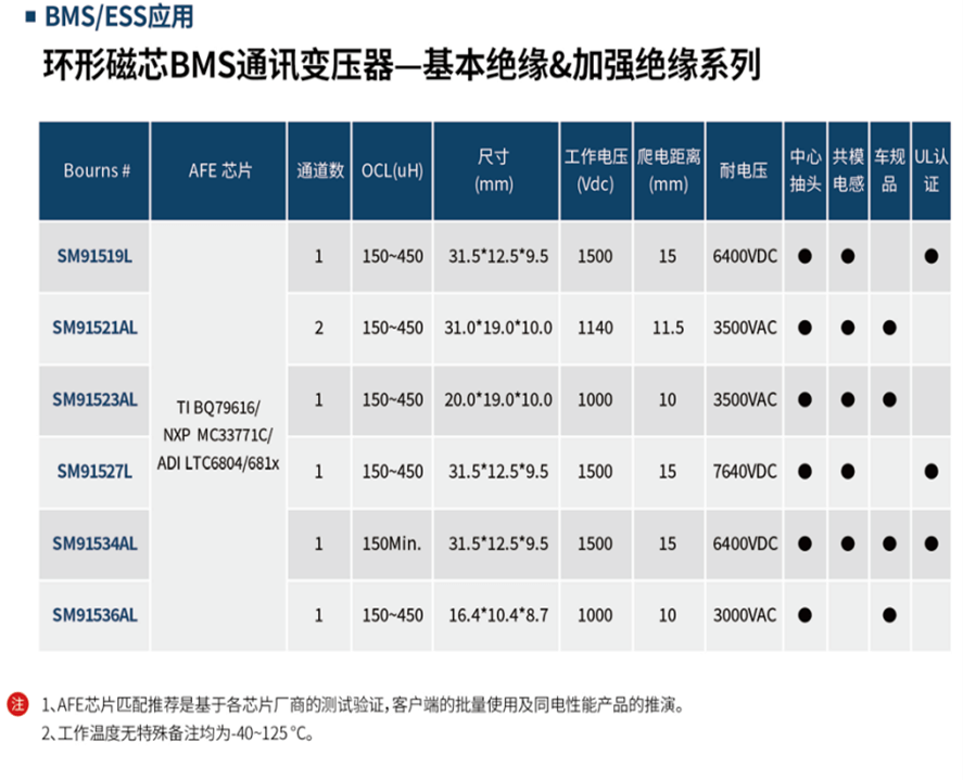三、 Bourns信號(hào)類隔離變壓器與主流BMS芯片廠商設(shè)計(jì)方案
