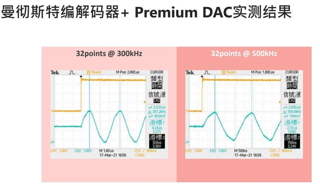 - 5、優(yōu)化的DAC(能支持4組),支持自動(dòng)數(shù)據(jù)產(chǎn)生功能,搭配曼徹斯特編解碼器,可高速地輸出平順的曼徹斯特碼正弦波。