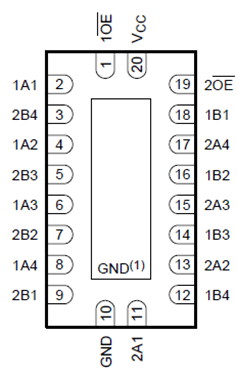| AiP74CBTLV3244 | 8路1通道 (帶使能) | 2.3V~3.6V | -40℃~125℃ | SOP20 TSSOP20 DHVQFN20 |