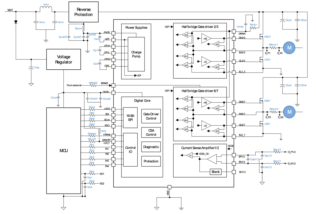 NSD3604-Q1系列是一款4通道半橋柵極驅(qū)動芯片,支持12V車載電池系統(tǒng),能承受40V拋負載電壓??瑟毩Ⅱ?qū)動最多16顆外置MOSFET,實現(xiàn)平均電流10A以上直流有刷電機控制;該系列也可以作為多通道高邊開關(guān)驅(qū)動使用。非常適合用于多電機或多負載應(yīng)用,如車門模塊,座椅控制器,電動尾門和區(qū)域控制器等車載應(yīng)用場景。