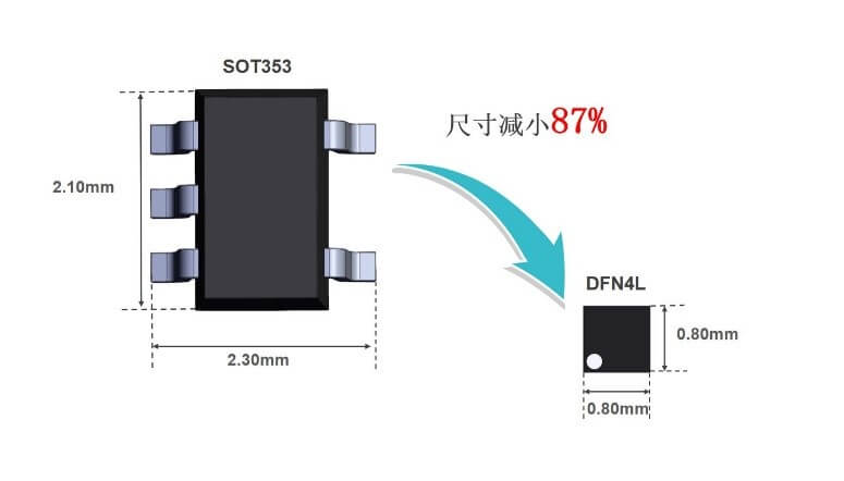 為滿(mǎn)足可穿戴設(shè)備、工業(yè)控制、網(wǎng)絡(luò)通信等各種應(yīng)用中邏輯器件小型化需求,I-CORE推出超小極薄無(wú)引腳封裝。 在產(chǎn)品中采用更小的封裝可以有效節(jié)省PCB空間,降低制造商成本。 與業(yè)界普遍使用的有引腳封裝如SOT相比,超小極薄無(wú)引腳封裝可節(jié)約高達(dá)87%、70%的PCB空間。