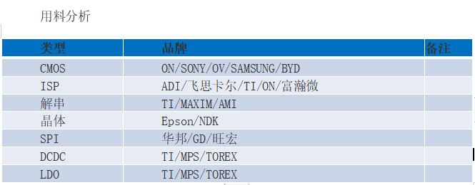 從成本層面來看,圖像傳感器(CIS)的成本最高,在攝像頭中占比約 52%;其次是光學(xué)鏡頭,占比20%;模組封裝的成本和鏡頭差距不大,為19%;三者占據(jù)了超九成的攝像頭成本。
