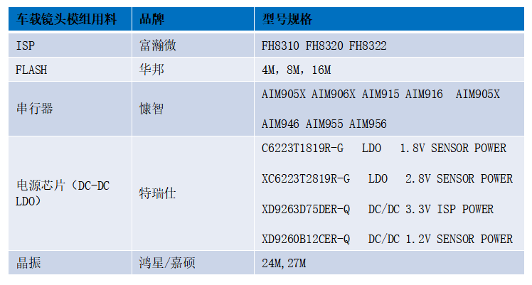 當(dāng)車載攝像頭開始工作時,光線將透過鏡頭,經(jīng)過圖像傳感器將光信號轉(zhuǎn)化成電信號,然后經(jīng)過A/D(模數(shù)轉(zhuǎn)換器)后變?yōu)閿?shù)字圖像信號,再由ISP(圖像信號處理器)進行色彩校正、降噪等一系列加工后,經(jīng)由串行器等將處理后的圖像數(shù)據(jù)傳輸給中央處理器。連接器主要用于固定攝像頭。