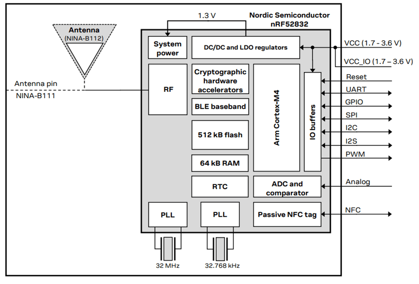 四、NINA-B112技術(shù)參數(shù)和內(nèi)部框圖