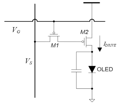 以一個(gè)像素單元為例,M1管與M2管都是PMOS,當(dāng)VG為負(fù)壓低電平時(shí),M1、M2導(dǎo)通,會(huì)產(chǎn)生漏極電流IDRIVE,IDRIVE決定OLED發(fā)光亮度,VG控制像素單元MOS通斷,VS決定像素點(diǎn)的發(fā)光亮度。 從AMOLED驅(qū)動(dòng)方式可見,電源管理芯片需要在非常寬范圍內(nèi)同時(shí)輸出多個(gè)穩(wěn)定的工作電壓,電致發(fā)光EL的正、負(fù)驅(qū)動(dòng)電壓,以及數(shù)字接口電壓。