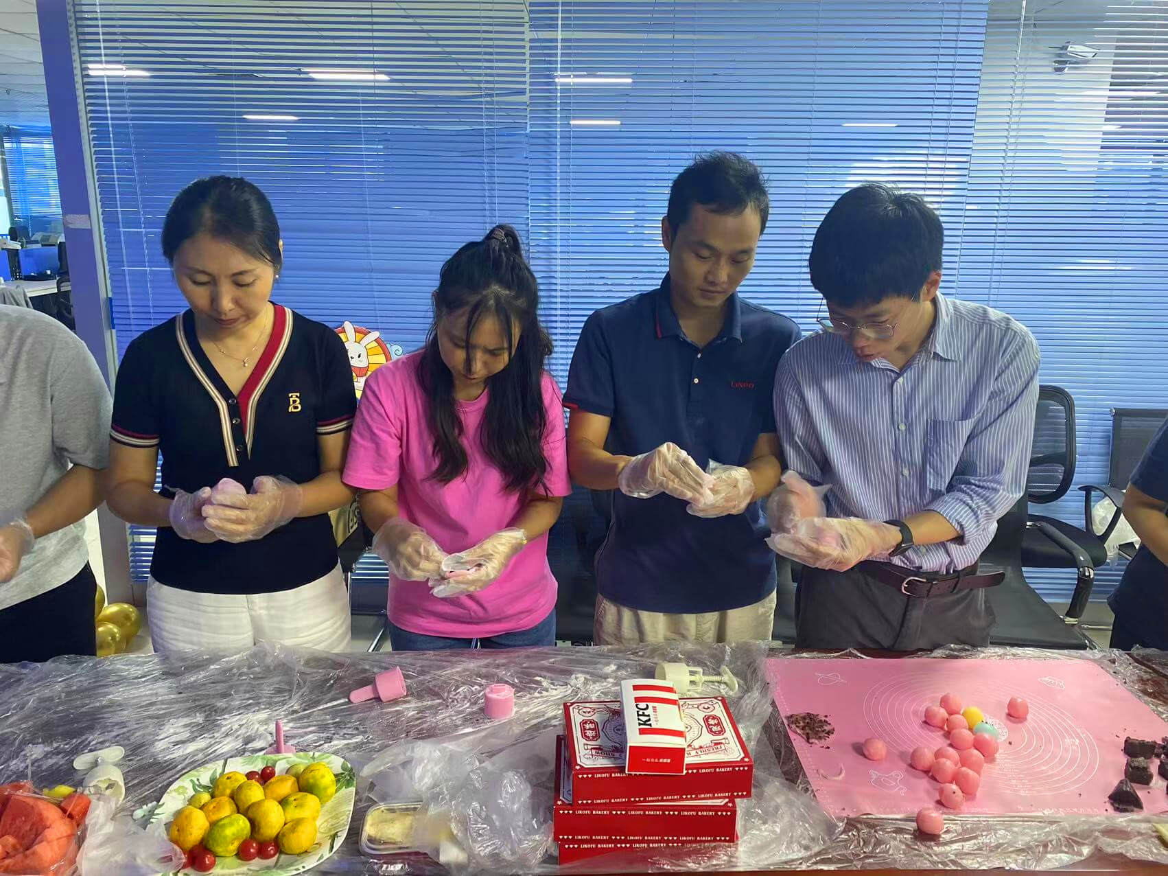 ??..??? 敞亮的前臺大廳區(qū),小姐姐小哥哥們,揉面的揉面、拌餡的拌餡、壓模的壓模,用提前準備好的食材和工具,制作出各種花式的冰皮月餅。愉快的氛圍中,一盒盒精致、美味的月餅禮盒擺滿了臺子,傳遞著大家對中秋的美好祝福。
