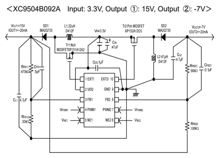 - 音頻功放雙電源供電,XC9504雙通道,升壓及負(fù)壓輸出,配合負(fù)壓LDO XC6902/1