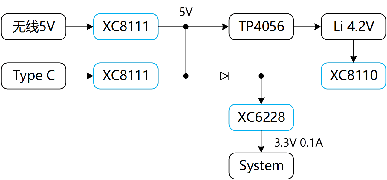 用理想二極管實現(xiàn)了5V輸入/鋰電池自動轉(zhuǎn)換,減少VF損耗