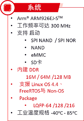 NUC980系列采用ARM926EJ-S核心,執(zhí)行速度達(dá)300MHz,有豐富的周邊接口,主要應(yīng)用為工業(yè)自動化控制、工業(yè)物聯(lián)網(wǎng)網(wǎng)關(guān)、智能家居網(wǎng)關(guān)、電表集中器、串口服務(wù)器、掃描槍/器等。