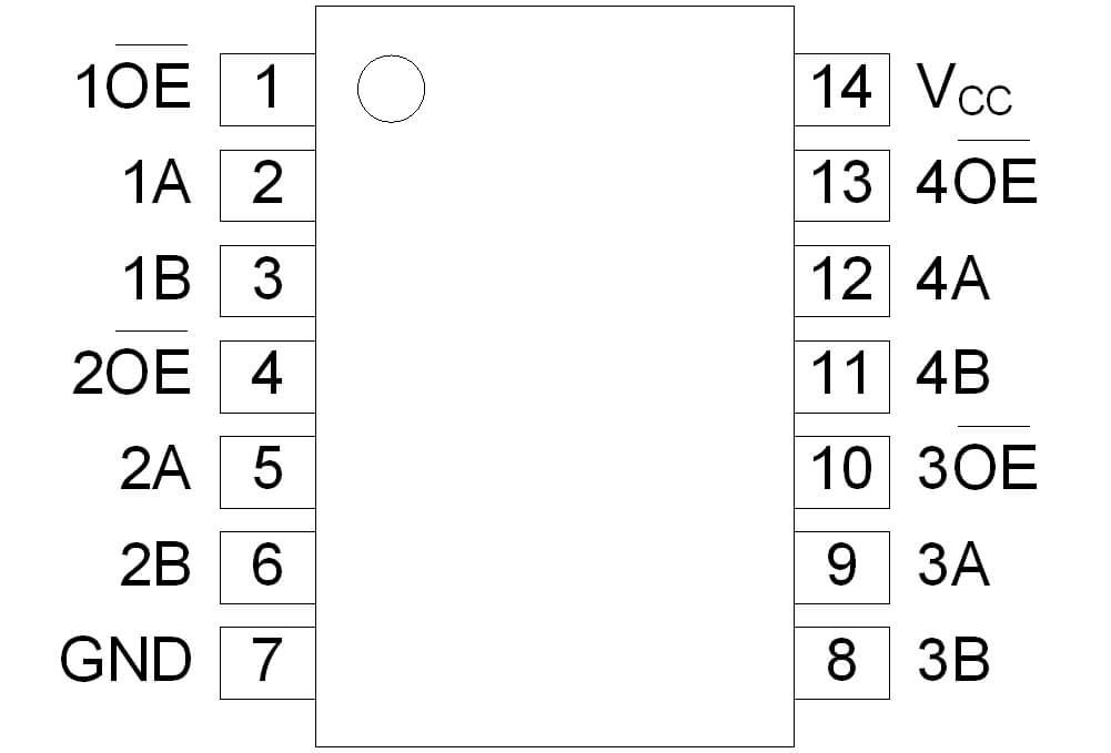 | AiP74CBTLV3125 | 4路1通道 (帶使能) | 2.3V~3.6V | -40℃~125℃ | SOP14 TSSOP14 SSOP16 |