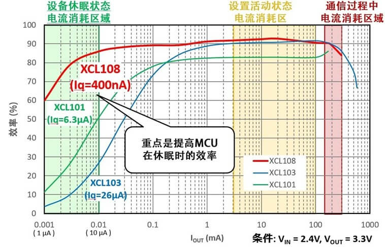 XCL108系列是特瑞仕半導(dǎo)體株式會社推出的超低功耗線圈一體型升壓型同步整流 DC/DC 轉(zhuǎn)換器,該轉(zhuǎn)換器具有超低功耗、小型化的特點,其最大的特點是只有400nA的超低靜態(tài)功耗,顯著提升輕負載效率,在藍牙、傳感器、MCU休眠時可用于小型化設(shè)備、干電池產(chǎn)品、紐扣電池產(chǎn)品等小型化便攜式產(chǎn)品,能大大增加產(chǎn)品的續(xù)航,節(jié)省PCB空間,極大方便產(chǎn)品更新迭代或者增加功能。