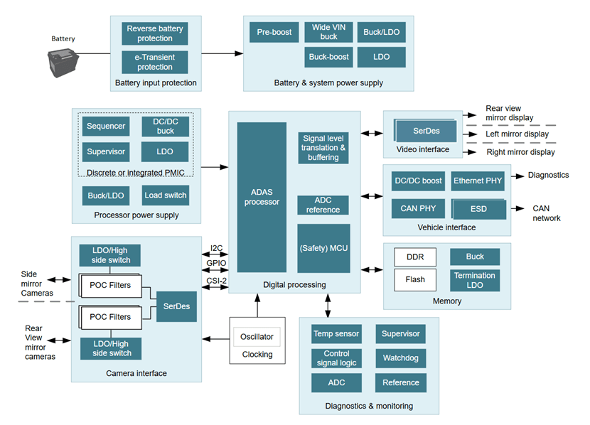 電子后視鏡需實時處理多路攝像頭數(shù)據(jù)、動態(tài)調(diào)節(jié)背光、支持復(fù)雜環(huán)境下的低延遲顯示,并滿足嚴苛的車規(guī)安全標準。其核心需求包括: