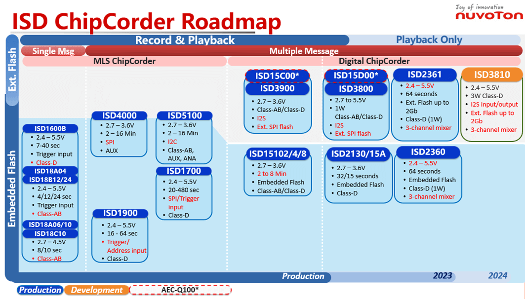 ? Chipcorder 系列產品 Roadmap