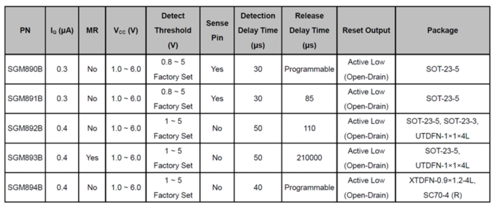 - 靈活可調的釋放延時,可以實現系統(tǒng)復位功能(SGM890/4/5/6/7/8/9);