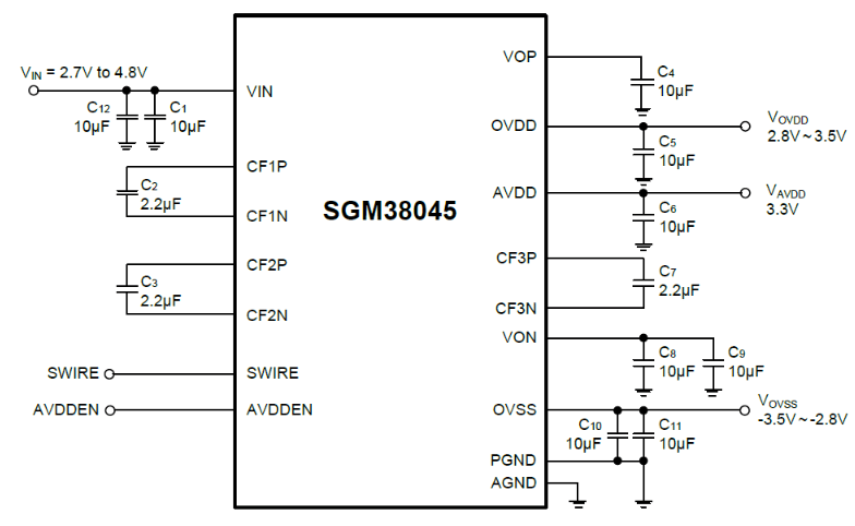 SGM38045是圣邦微電子重點(diǎn)推出的一顆專門為智能手環(huán)、智能手表等小尺寸AMOLED顯示屏提供AVDD(數(shù)字接口電壓)、ELVDD(電致發(fā)光正驅(qū)動(dòng)電壓)、ELVSS(電致發(fā)光負(fù)驅(qū)動(dòng)電壓)的無電感電源管理芯片。
