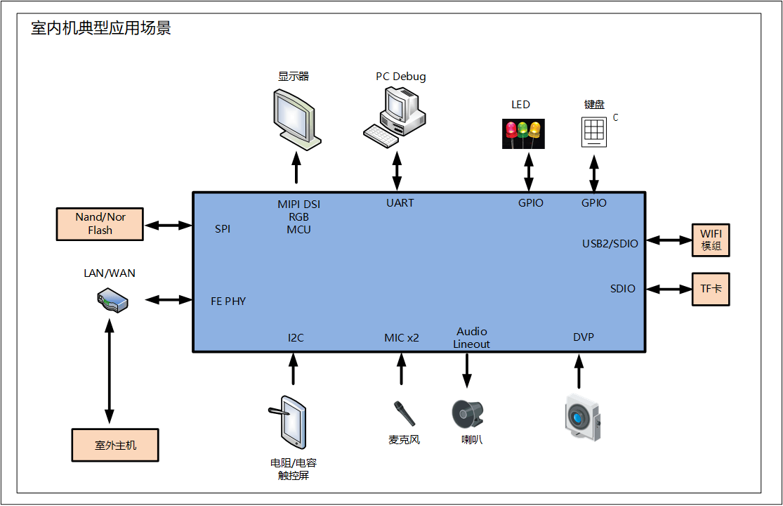MC3310是一款專業(yè) ISP芯片,搭載RISC 雙核,最高支持1.0G;支持2MP DVP視頻輸入,同時(shí)支持高性能H265&H264視頻解碼,解碼最高支持1080p@30fps;軟件實(shí)現(xiàn)多協(xié)議音頻編解碼,支持G.711、G.726;支持MIPI /RGB 高清顯示輸出接口,支持USB/Ethernet等豐富接口;內(nèi)置EPHY網(wǎng)絡(luò)接口;在SDK方面基于Linux 4.9的開發(fā)包,并提供多種協(xié)議的音頻編解碼庫(kù);