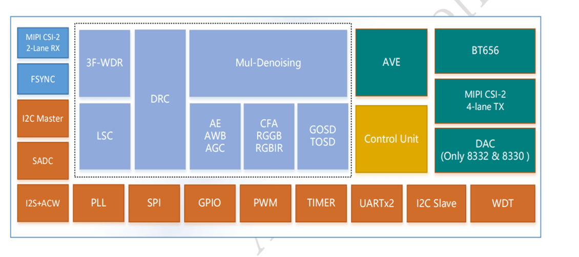 FH8333 是一款高性能低功耗 3M 車載后裝圖像處理芯片,支持 RGGB/RGB-IR Bayer 格式輸入;支持 3 幀合成 HDR,最大動(dòng)態(tài)范圍可達(dá) 120dB;內(nèi)置多級(jí)去噪處理模 塊,具有優(yōu)秀的噪聲控制能力;視頻處理能力可達(dá) 1920×1536@30fps;支持 HDAnalog、MIPI 和 BT656 輸出。適合倒車、環(huán)視、駕駛員監(jiān)測(cè)、座艙監(jiān)測(cè)和流媒體攝像頭 等車載攝像頭應(yīng)用。