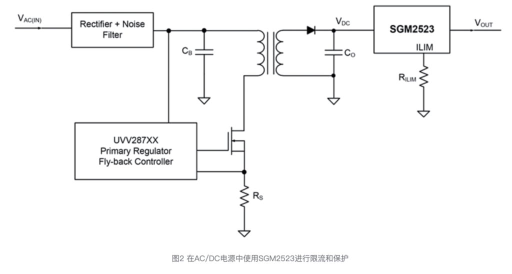 以上所列舉的應(yīng)用其實都需要精確的輸出限流和二級側(cè)保護,以便能夠驅(qū)動二級側(cè)電流傳感的需求。但如果額外添加精密運算放大器,既增加了系統(tǒng)復(fù)雜性,也容易導(dǎo)致傳感損耗,而SGM2523內(nèi)部集成的低阻抗N溝道FET則提供了一個簡單有效的解決方案。